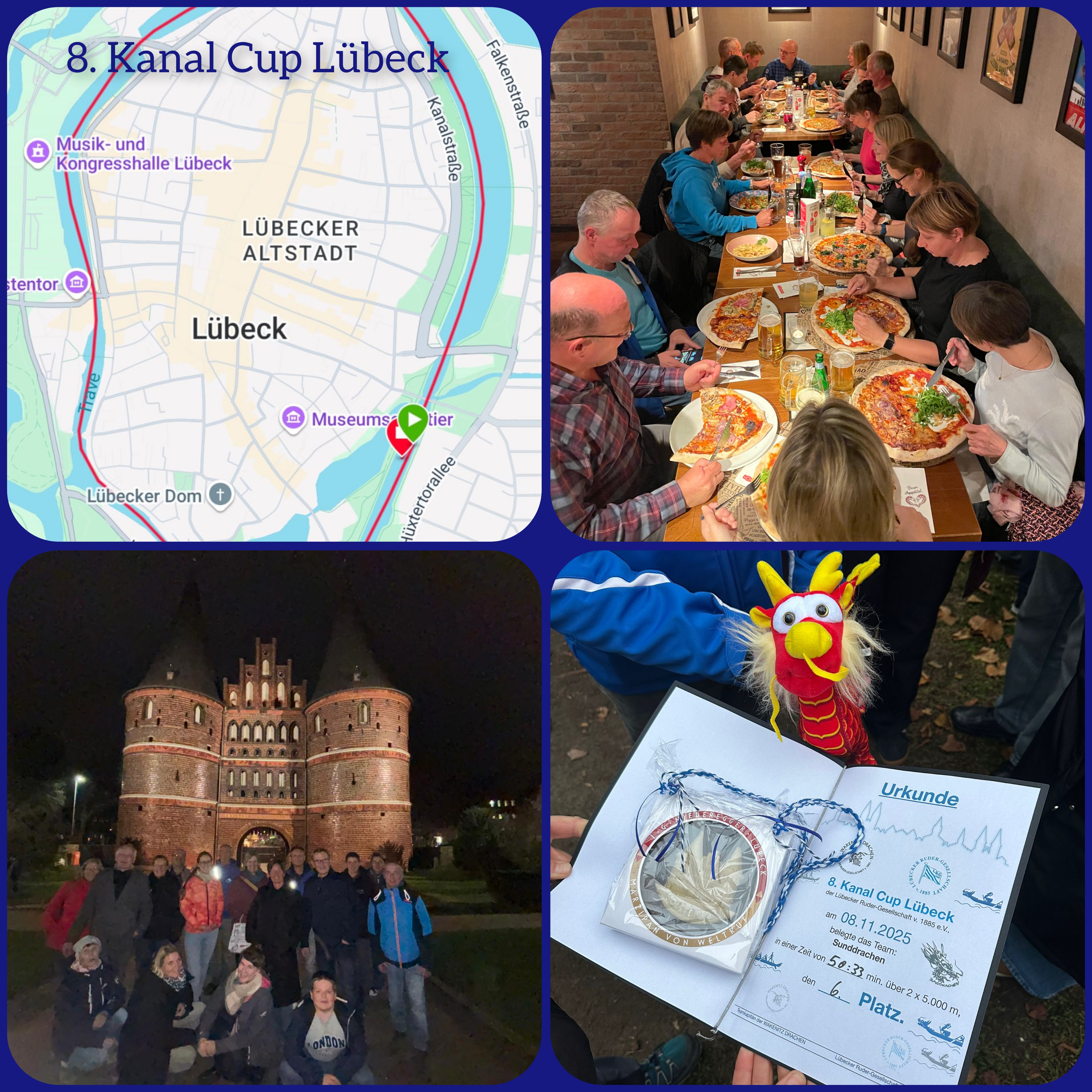 Am 08. November 2025 fand der 8. Kanal Cup in Lübeck statt – ein besonderes Rennen, bei dem die historische Altstadt gleich zweimal umrundet werden muss. Die Sunddrachen waren mit 23 Paddlerinnen und Paddlern vor Ort und stellten sich der Herausforderung über 2 × 5 Kilometer.