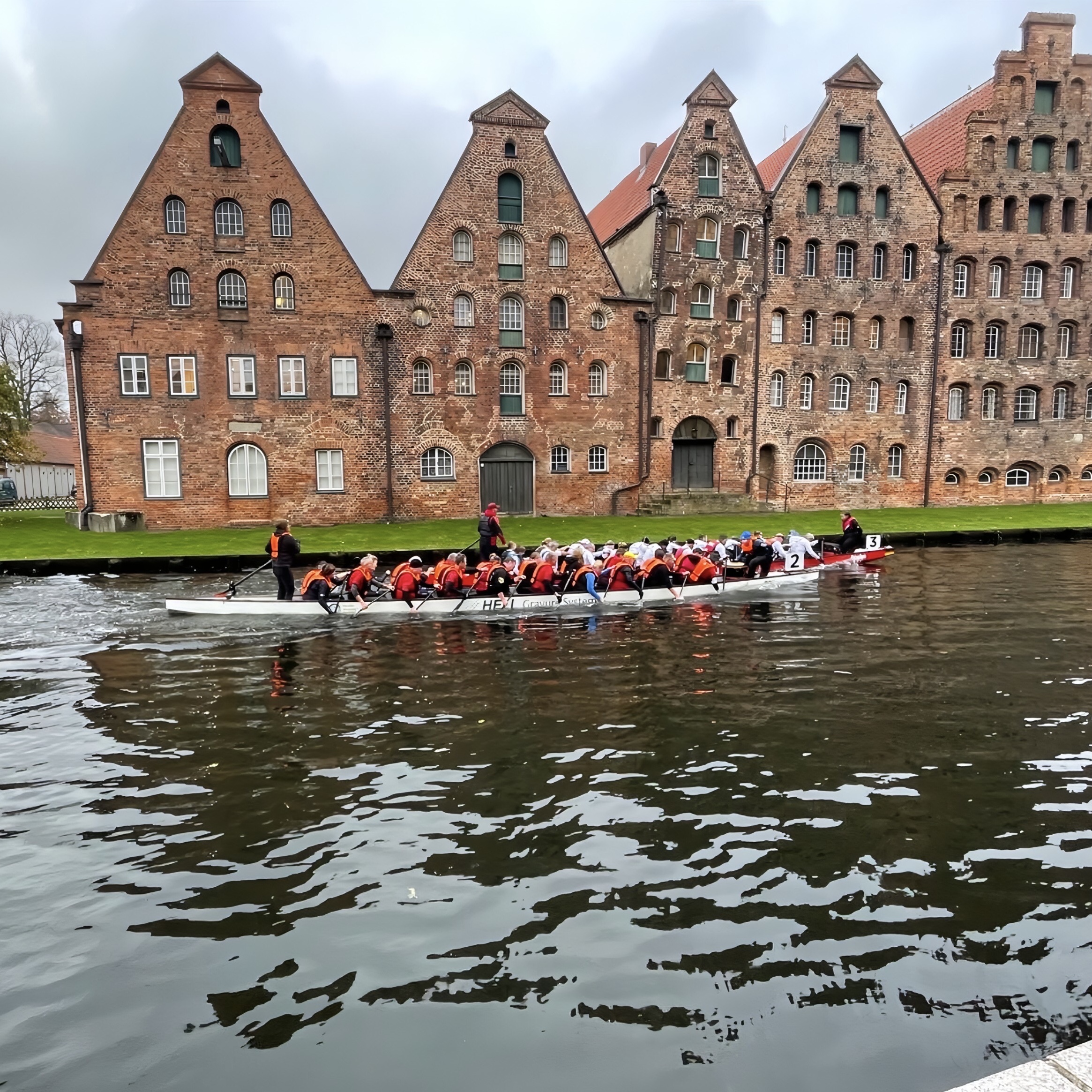 Am 08. November 2025 fand der 8. Kanal Cup in Lübeck statt – ein besonderes Rennen, bei dem die historische Altstadt gleich zweimal umrundet werden muss. Die Sunddrachen waren mit 23 Paddlerinnen und Paddlern vor Ort und stellten sich der Herausforderung über 2 × 5 Kilometer.